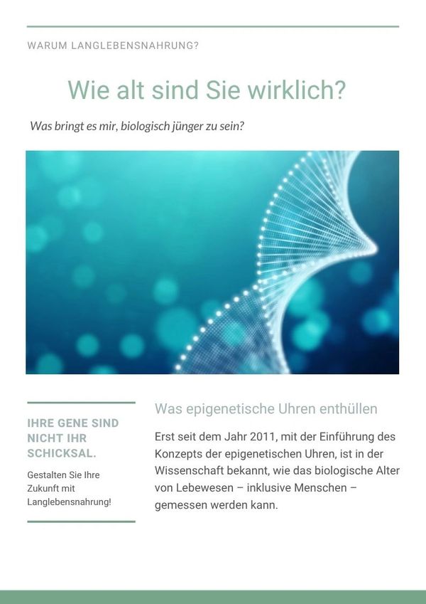 Sinnvolles Einkommen durch Langlebensnahrung. Helfen Sie anderen, auf Zellebene langsamer oder rückwärts zu Altern!