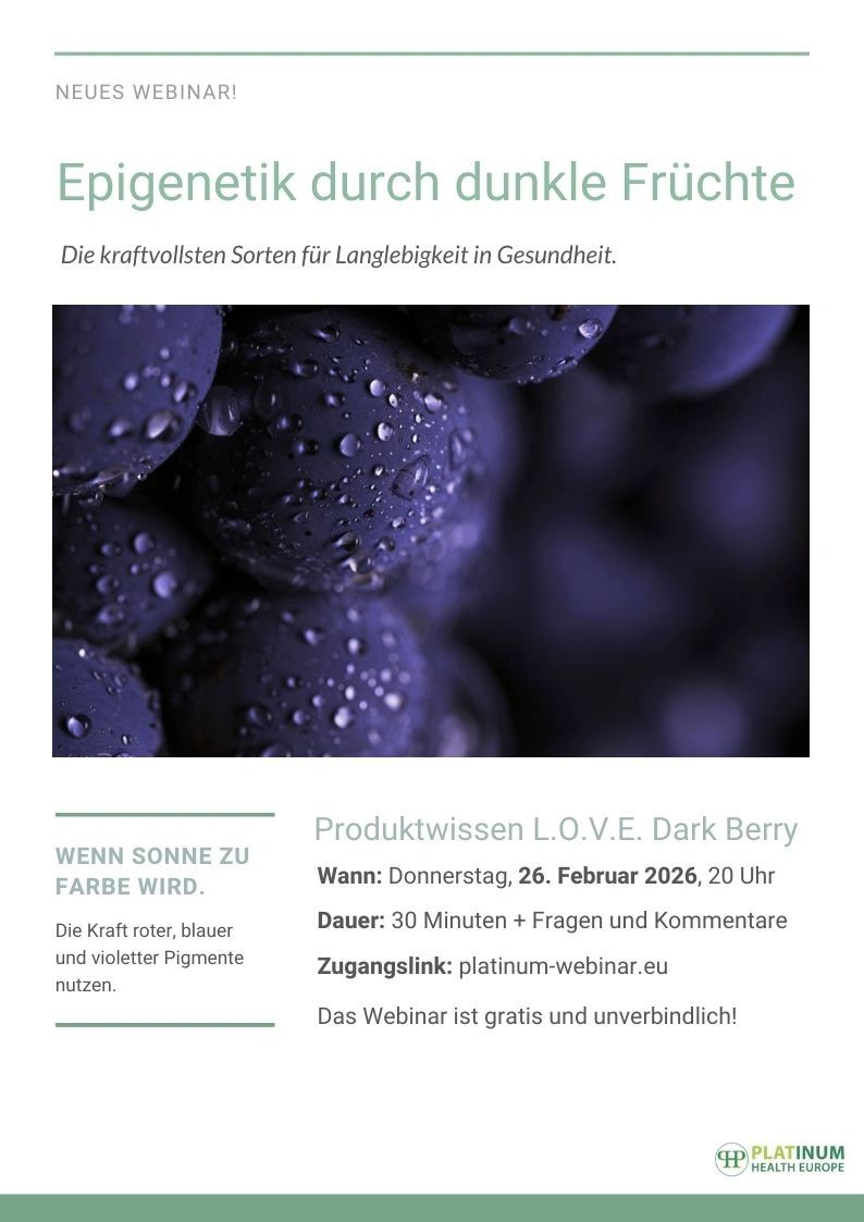 Jeden Donnerstag um 20 Uhr laden wir Sie und Ihre Gäste herzlich ein zu Live-Webinaren und Videokonferenzen über die Vorteile der Produkte und der Markenpartnerschaft von Platinum Europe.