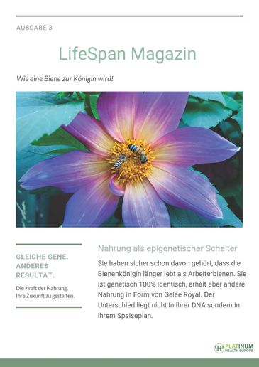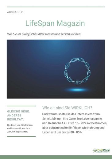 Nach der 15 Minuten Präsentation zum LifeSpan Programm folgt diesmal ein Sonderteil zu Epigenetik durch Nahrung und zur aktuellen Ausgabe ...