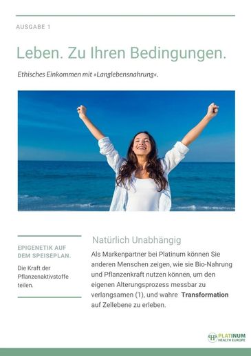 Sinnvolles Einkommen durch Langlebensnahrung. Helfen Sie anderen, auf Zellebene langsamer oder rückwärts zu Altern!